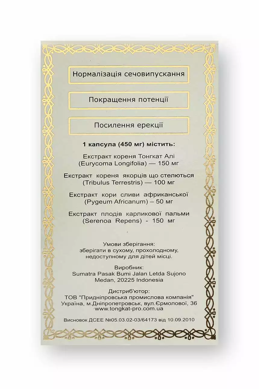 Форма випуску Тонгкат Алі Про - 10 Капсул у блістері по 450 мг.